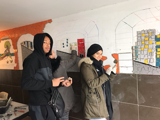 Ce chantier a également permis de valoriser le potentiel créatif des jeunes (maquette de la fresque, technique de la mosaïque)...